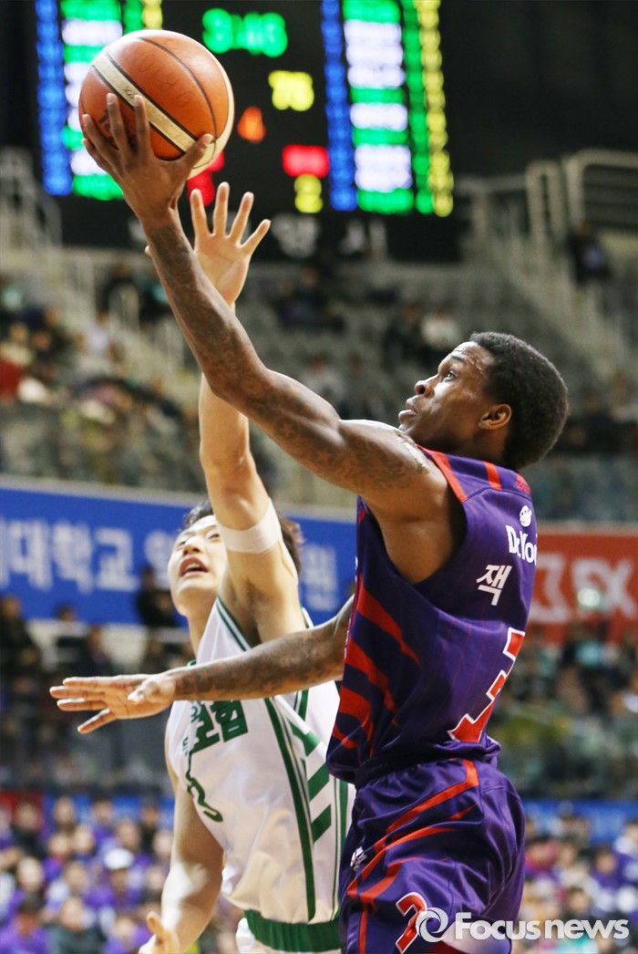| △ 허웅의 저지를 뚫고 슈팅하는 조 잭슨 |