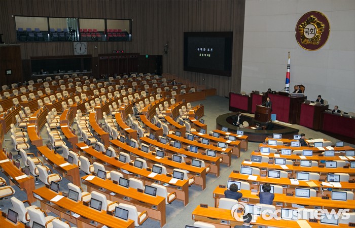 (서울=포커스뉴스) 테러방지법 직권상정에 반발해 야당이 무제한 토론(필리버스터)를 일주일째 진행하며 총 130시간을 돌파한 29일 오전 서울 여의도 국회 본회의장에서 토론에 참여한 홍종학 더불어민주당 의원이 발언하고 있다.