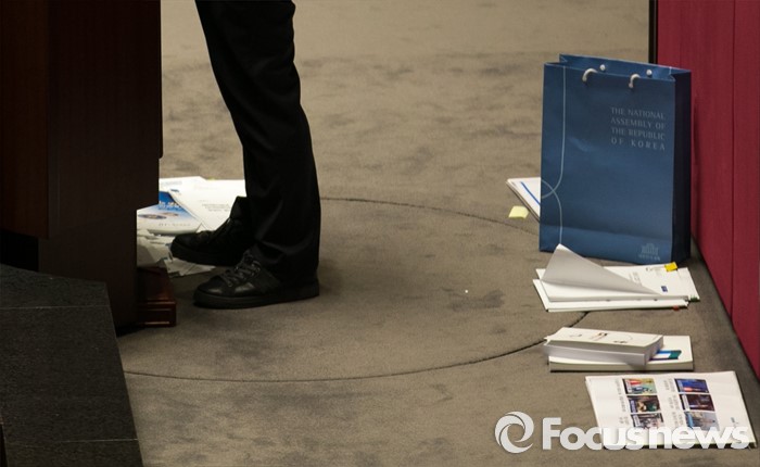 (서울=포커스뉴스) 테러방지법 직권상정에 반발해 야당이 무제한 토론(필리버스터)를 일주일째 진행하며 총 130시간을 돌파한 29일 오전 서울 여의도 국회 본회의장에서 토론에 참여한 홍종학 더불어민주당 의원이 발언하고 있다.