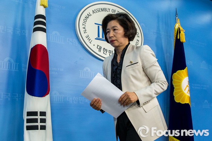 (서울=포커스뉴스) 더불어민주당의 '현역의원 평가 하위 20%'에 걸려 컷오프(공천배제)된 전정희 의원이 29일 오전 서울 여의도 국회에서 탈당 기자회견을 마친 뒤 정론관을 나서고 있다.