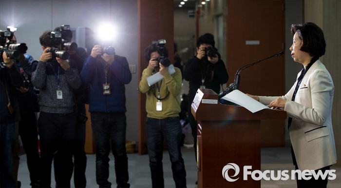 (서울=포커스뉴스) 더불어민주당의 '현역의원 평가 하위 20%'에 걸려 컷오프(공천배제)된 전정희 의원이 29일 오전 서울 여의도 국회 정론관에서 탈당 기자회견을 하고 있다.