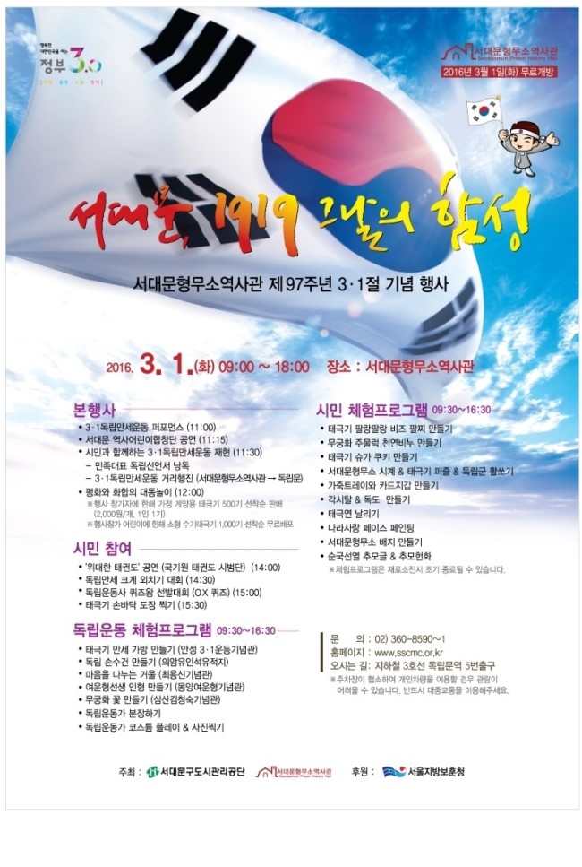 2016년 3월 1일에는 제97주년 3·1절을 맞아 곳곳에서 기념행사가 다채롭게 열린다.