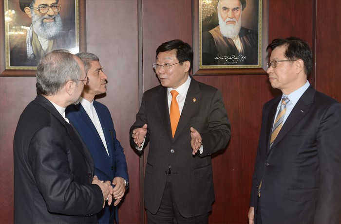(서울=포커스뉴스) 주형환 산업통상자원부 장관이 28일(현지시간) 이란 경제재정부를 방문해 알리 타옙니아(Ali Tayebnia) 이란 경제재정부 장관과 면담을 갖고 있다. 주 장관은 이날 면담에서 한-이란 양국간 경제 협력과 한국의 금융 및 개발원조 지원 확대, 보험과 자금세탁 관련 금융 협력 및 조세 협력에 관해 의견을 교환했다. <사진제공=산업통상자원부>