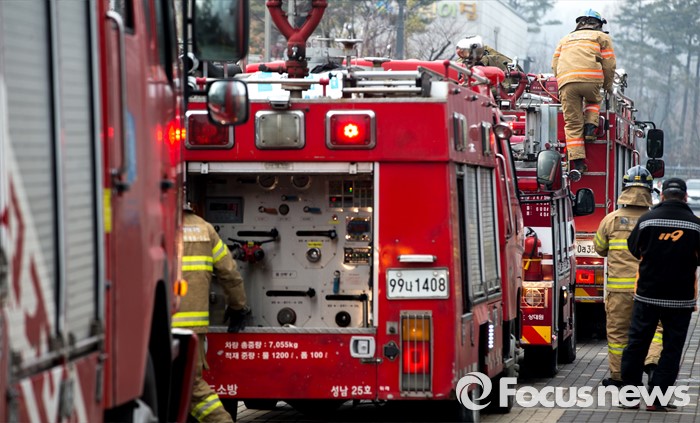 | △ 성남시청 합동 소방훈련 하는 대원들 |