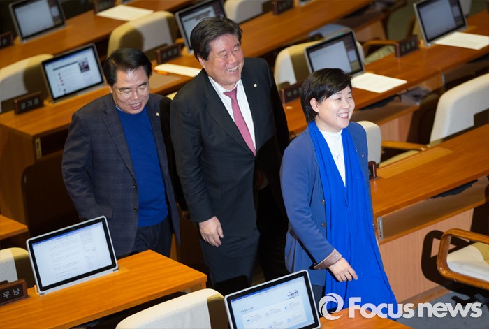 (서울=포커스뉴스) 테러방지법 직권상정에 반발해 야당이 무제한 토론(필리버스터)를 일주일째 진행하며 총 135시간을 돌파한 29일 오후, 서영교 더불어민주당 의원이 서울 여의도 국회 본회의장에서 토론을 마친 후 동려 의원들과 퇴장하고 있다.