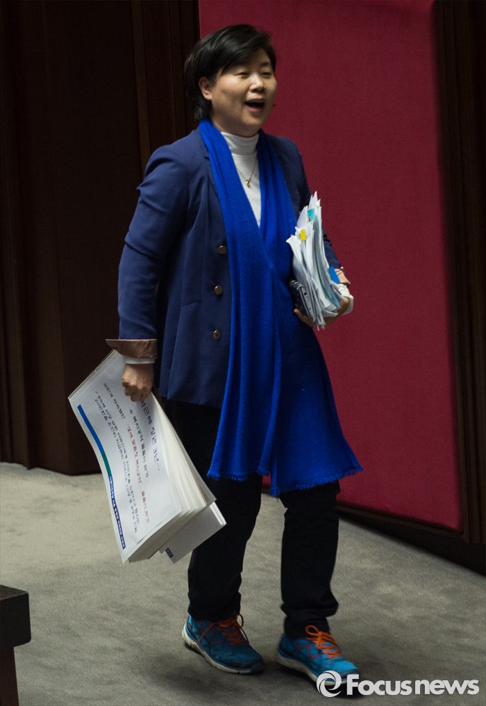 (서울=포커스뉴스) 테러방지법 직권상정에 반발해 야당이 무제한 토론(필리버스터)를 일주일째 진행하며 총 135시간을 돌파한 29일 오후, 서영교 더불어민주당 의원이 서울 여의도 국회 본회의장에서 토론을 마친 후 퇴장하고 있다.
