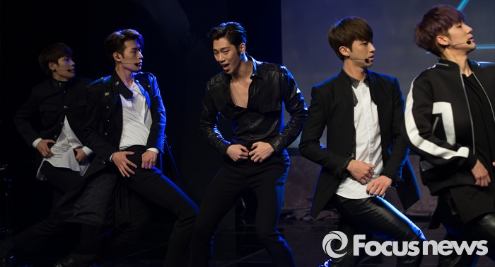 (서울=포커스뉴스) 29일 오후 서울 강남구 일지아트홀에서 신인 보이그룹 크나큰이 데뷔 쇼케이스에서 타이틀곡 'KNOCK'를 선보이고 있다.