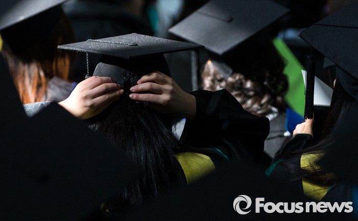 (서울=포커스뉴스) 29일 오후 서울 서대문구 이화여자대학교에서 열린 2015학년도 전기 학위수여식에 참석한 졸업생이 학사모를 고쳐 쓰고 있다.