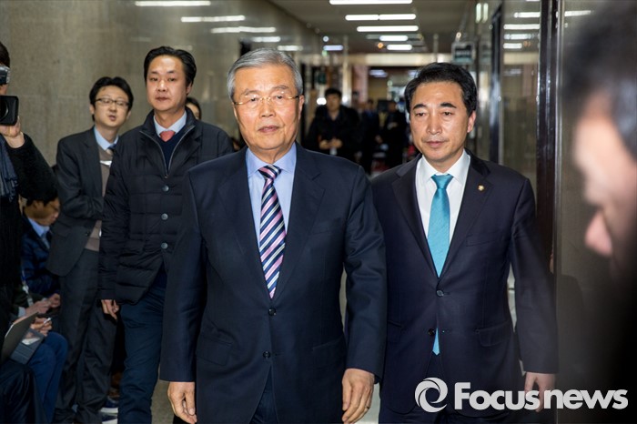 (서울=포커스뉴스) 김종인 더불어민주당 비상대책위원회 대표가 29일 오후 서울 영등포구 국회에서 열린 '당무위원회의'에 참석하고 있다. 사진 오른쪽은 박수현 대표비서실장.