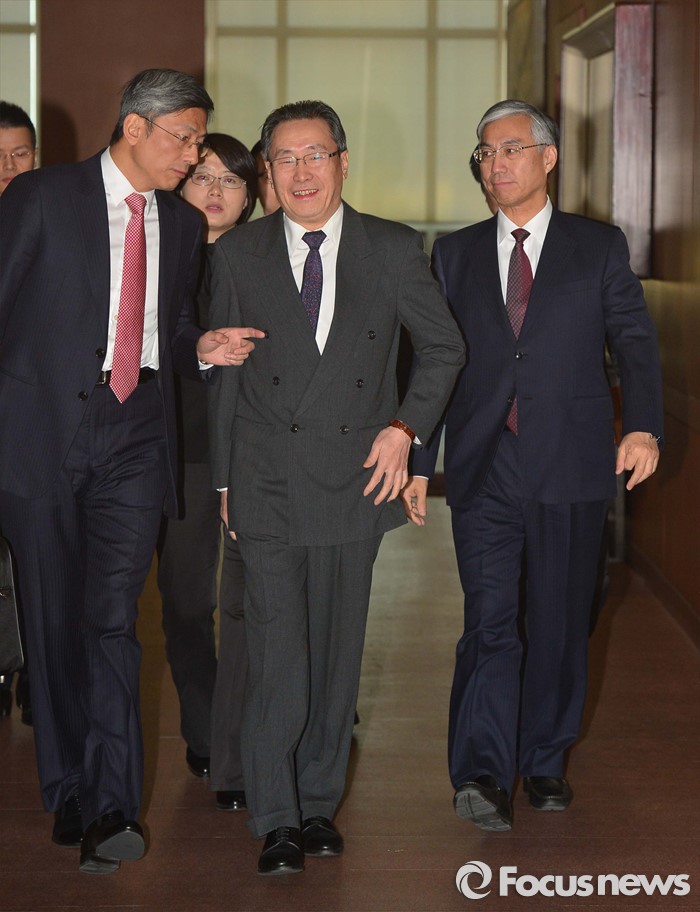 (서울=포커스뉴스) 29일 서울 세종로 정부서울청사 외교부에서 우다웨이(가운데) 북핵6자회담 중국 측 수석대표가 윤병세 외교부 장관을 만나기 위해 입장하고 있다.