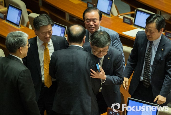 (서울=포커스뉴스) 테러방지법 직권상정에 반발해 야당이 무제한 토론(필리버스터)를 일주일째 진행하며 총 140시간을 돌파한 29일 오후 서울 여의도 국회 본회의장에서 토론에 참여한 최원식 국민의당 의원이 발언을 마친 후 퇴장하고 있다.