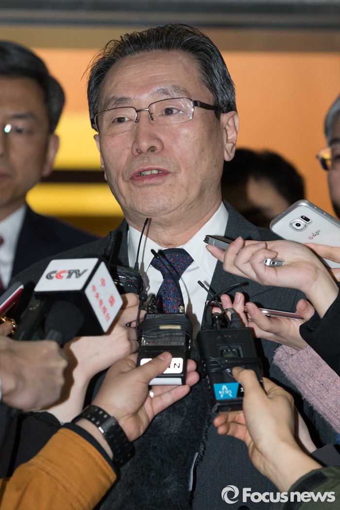 (서울=포커스뉴스) 북핵 6자회담 중국 측 수석대표인 우다웨이 외교부 한반도사무특별대표가 29일 오후 서울 종로구 외교부 청사에서 윤병세 외교부장관과의 면담을 마치고 취재진의 질문에 답하고 있다.