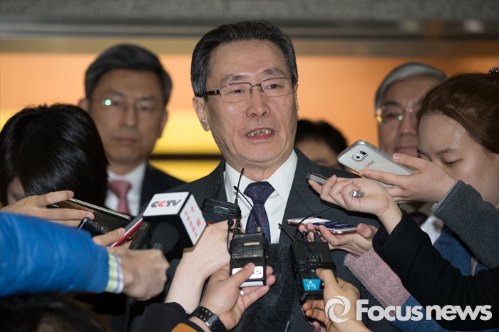 (서울=포커스뉴스) 북핵 6자회담 중국 측 수석대표인 우다웨이 외교부 한반도사무특별대표가 29일 오후 서울 종로구 외교부 청사에서 윤병세 외교부장관과의 면담을 마치고 취재진의 질문에 답하고 있다.