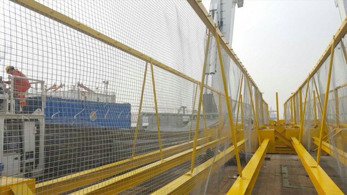 (서울=포커스포토) 세월호 주변을 둘러싸는 사각펜스 등 자재를 실은 상하이샐비지 소속 선박(센첸하오, Shen qian Hao)*이 지난 26일 낮 중국 상하이를 출발해 29일 오전 10시 30분경 목포신항으로 들어왔다. 해수부는 이번에 설치할 철제 사각펜스는 앞으로 선수들기 및 인양시 유실방지망을 설치할 수 없는 선체 좌현쪽 개구부 등을 통한 유실을 방지하기 위하여 가로 200m×세로 160m×높이 3m 규모로 눈금 2.0㎝ 직사각형 모양의 철재망 36개 세트로서 25일간 설치할 예정이라고 밝혔다. <사진제공=해양수산부>