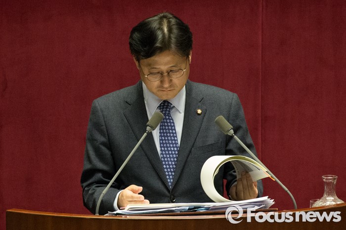 (서울=포커스뉴스) 테러방지법 직권상정에 반발해 야당이 무제한 토론(필리버스터)를 일주일째인 29일 오후 서울 여의도 국회 본회의장에서 토론에 참여한 홍익표 더불어민주당 의원이 자료를 보고 있다.