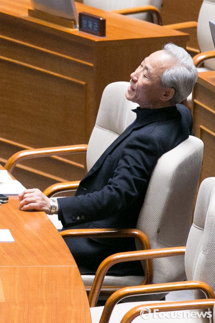 (서울=포커스뉴스) 김종훈 새누리당 의원이 1일 오전 서울 여의도 국회 본회의장에서 임수경 의원의 무제한 토론(필리버스터)에 대해 항의하고 있다.
