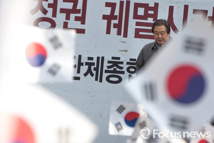 (서울=포커스뉴스) 김무성 새누리당 대표가 1일 오후 서울시청 앞 광장에서 열린 '북핵폐기 삼일절 국민대회 및 구국기도회'에 참석, 발언이 끝난 뒤 단상에서 내려오고 있다.