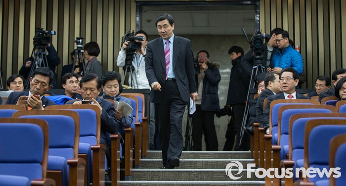 (서울=포커스뉴스) 더불어민주당이 필러버스터 중단을 예고한 1일 오후 이종걸 더민주 원내대표가 서울 여의도 국회에서 열린 의원총회에 참석하고 있다.