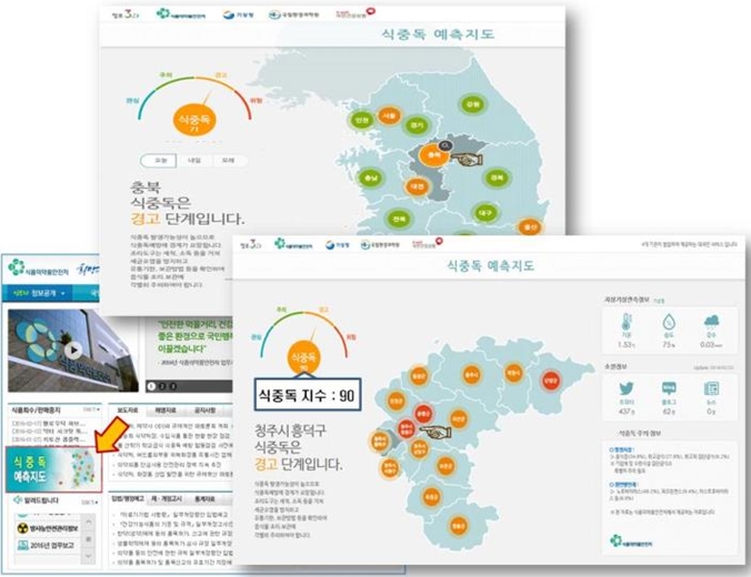 또한 지난 식중독 발생 정보를 분석해 월별로 많이 발생한 시설·원인균에 대한 정보와 실시간 기상정보 및 같은 시기 SNS 통계(트위터 등)도 함께 서비스한다.