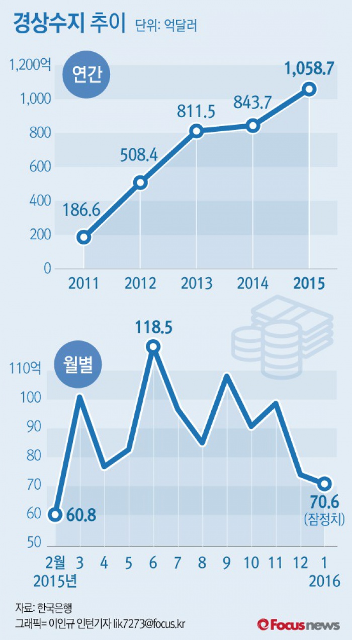 (서울=포커스뉴스)2일 한국은행이 발표한 1월 국제수지 잠정치 자료에 따르면 1월 경상수지는 70억6000만달러로 47개월째 흑자를 이어갔다.