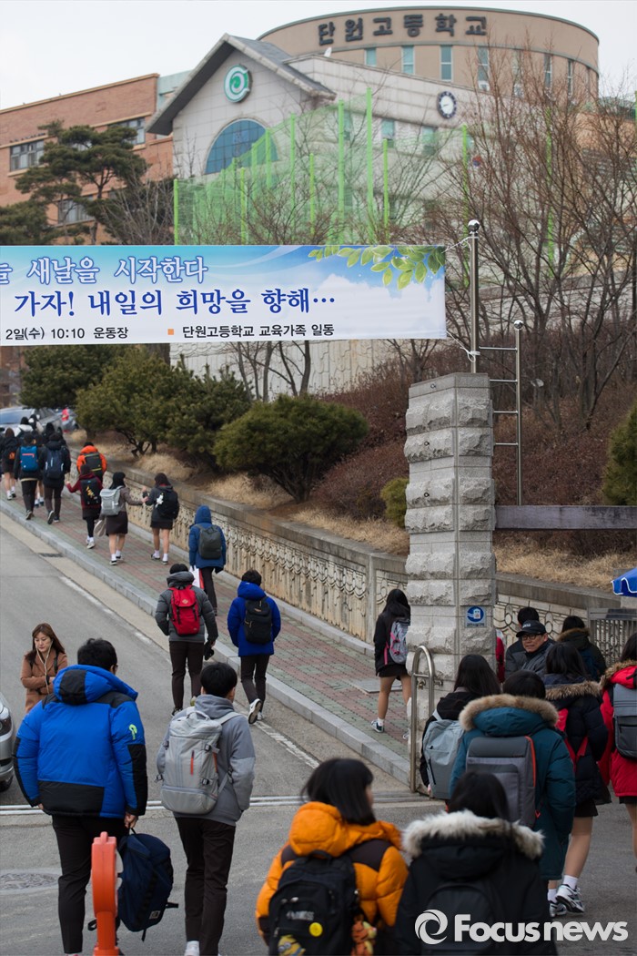 (안산=포커스뉴스) 2일 오전 신입생 입학식이 열리는 경기도 안산 단원고등학교에 학생들이 등교하고 있다.