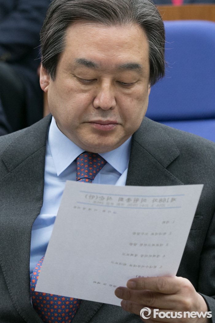 (서울=포커스뉴스) 김무성 새누리당 대표가 2일 오전 서울 여의도 국회에서 열린 의원총회에 참석해 문서를 보고 있다.