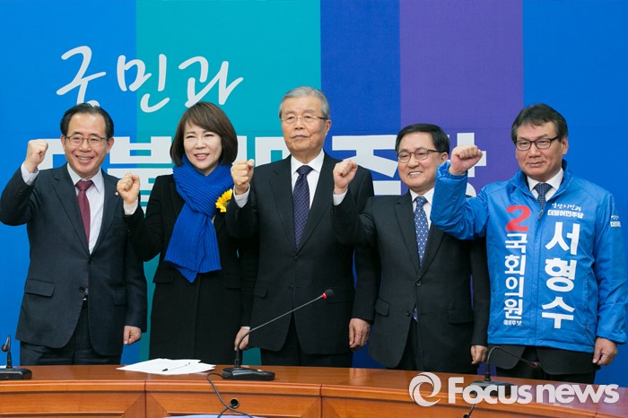 한편, 더민주는 이날 오전 서울 강남을에 전현희 전 의원, 부산 해운대갑에 유영민 전 포스코 경영연구소 사장, 경남 양산을에 서형수 전 한겨레신문 사장을 전략공천한다고 발표했다.김종인(가운데) 더불어민주당 비대위 대표와 김성곤(왼쪽) 전략공천위원장이 2일 오전 서울 여의도 국회에서 전략공천 명단 발표 기자회견에 참석해, 공천자들과 화이팅을 외치고 있다. 왼쪽부터 김 위원장, 전현희 전 의원(서울 강남을), 김 대표, 유영민 전 포스코 경영연구소 사장(부산 해운대갑), 서형수 전 한겨레신문 사장(경남 양산). 2016.03.02 박철중 기자