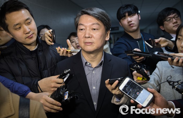 | △ 김종인 '야권통합' 발언에 질문 받는 안철수 |