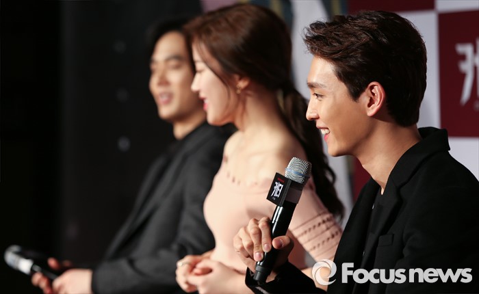 (서울=포커스뉴스) 2일 오전 서울 광진구 롯데시네마 건대입구점에서 열린 영화 '커터'(감독 정희성) 제작보고회에 참석한 배우 최태준이 취재진의 질문에 답하고 있다.