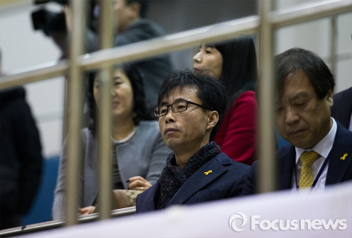 (안산=포커스뉴스) 전명선 4·16 가족협의회 위원장이 2일 오전 경기도 안산시 단원구 올림픽기념관에서 열린 단원고등학교 입학식에 참석하고 있다.