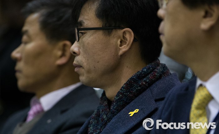 (안산=포커스뉴스) 전명선(가운데) 4·16 가족협의회 위원장이 2일 오전 경기도 안산시 단원구 올림픽기념관에서 열린 단원고등학교 입학식에 참석하고 있다.