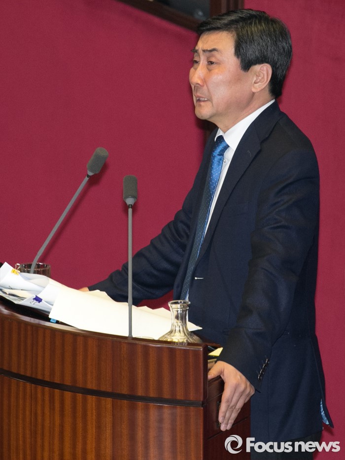 (서울=포커스뉴스) 테러방지법 직권상정에 반발해 야당이 세계 최장 기록의 필리버스터(무제한 토론)를 이어가고 있는 2일 오후 서울 여의도 국회 본회의장에서 토론에 참여한 이종걸 더불어민주당 원내대표가 발언 중 울먹이고 있다. 야당은 이날 필리버스터를 중단하고 선거법 등을 처리할 예정이다.