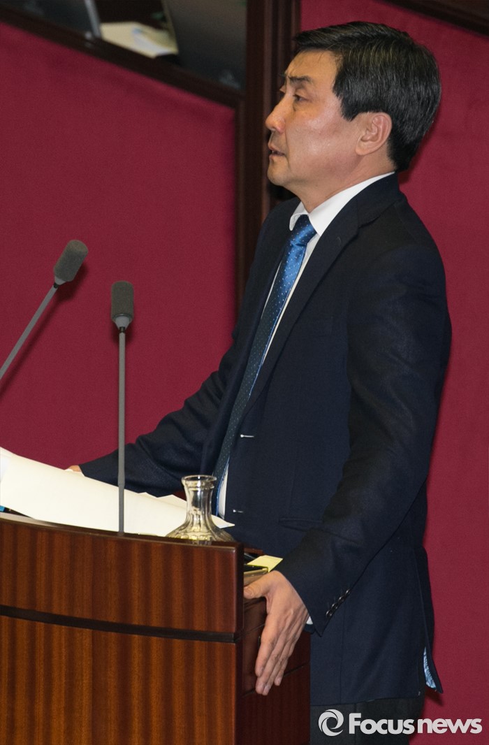 (서울=포커스뉴스) 테러방지법 직권상정에 반발해 야당이 세계 최장 기록의 필리버스터(무제한 토론)를 이어가고 있는 2일 오후 서울 여의도 국회 본회의장에서 토론에 참여한 이종걸 더불어민주당 원내대표가 발언 중 울먹이고 있다. 야당은 이날 필리버스터를 중단하고 선거법 등을 처리할 예정이다.