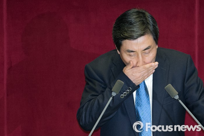 (서울=포커스뉴스) 테러방지법 직권상정에 반발해 야당이 세계 최장 기록의 필리버스터(무제한 토론)를 이어가고 있는 2일 오후 서울 여의도 국회 본회의장에서 토론에 참여한 이종걸 더불어민주당 원내대표가 발언 중 울먹이고 있다. 야당은 이날 필리버스터를 중단하고 선거법 등을 처리할 예정이다.