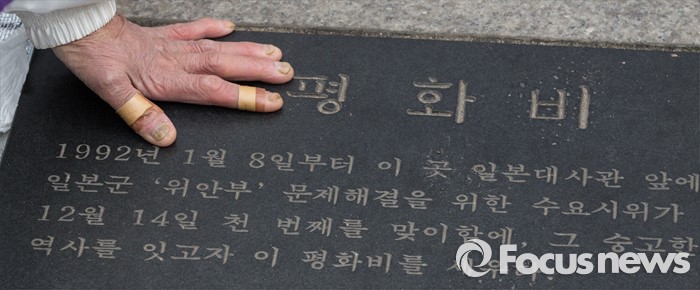 (서울=포커스뉴스) 2일 오후 서울 종로구 옛 주한일본대사관 앞에서 한국정신대문제대책협의회, 학생들을 비롯한 참석자들이 '제1220차 일본군 위안부 문제해결을 위한 정기 수요시위'를 하고 있다.