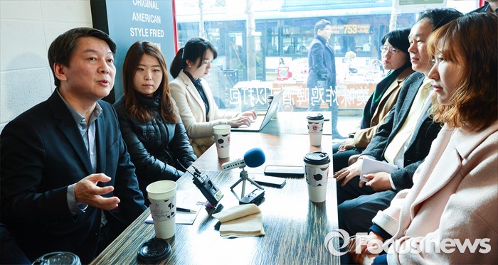 (서울=포커스뉴스) 안철수 국민의당 상임공동대표가 2일 오후 서울 여의도의 한 음식점에서 직장인들과 대화를 나누고 있다.