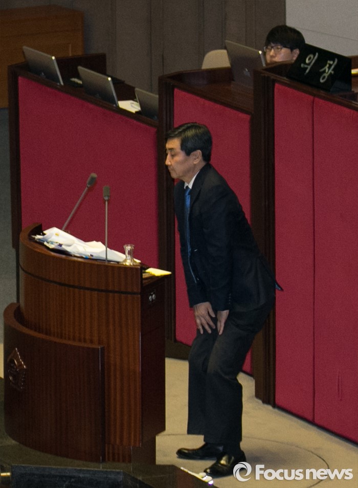(서울=포커스뉴스) 테러방지법 직권상정에 반발해 야당이 세계 최장 기록의 필리버스터(무제한 토론)를 이어가고 있는 2일 오후 서울 여의도 국회 본회의장에서 토론에 참여한 이종걸 더불어민주당 원내대표가 이석현 국회 부의장의 발언동안 몸을 풀고 있다. 야당은 이날 필리버스터를 중단하고 선거법 등을 처리할 예정이다.