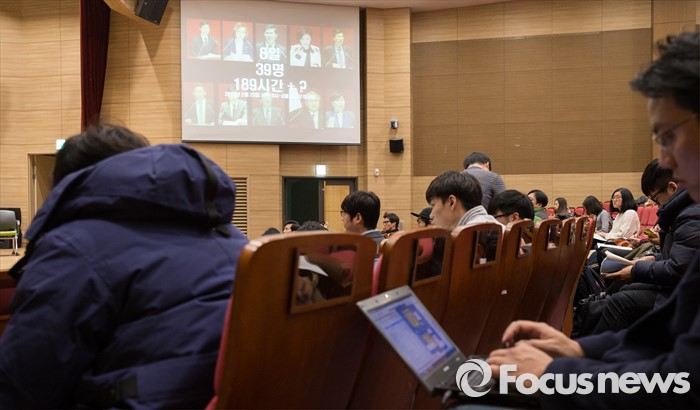 (서울=포커스뉴스) 2일 오후 서울 여의도 국회 의원회관에서 열린 테러방지법, 필리버스터, 시민의 자유에 관한 만민공동회 행사에서 신경민 더불어민주당 의원이 발언을 하고 있다.