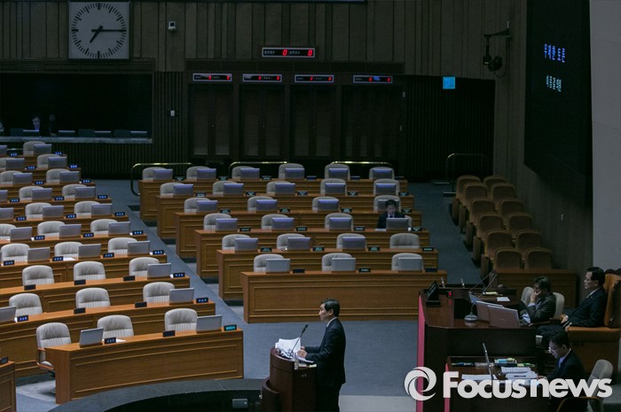 (서울=포커스뉴스) 테러방지법 직권상정에 반발해 야당이 세계 최장 기록의 필리버스터(무제한 토론)를 이어가고 있는 2일 오후 서울 여의도 국회 본회의장에서 토론에 참여한 이종걸 더불어민주당 원내대표가 발언하고 있다. 이 원내대표는 이날 정청래 의원의 기록인 11시간 40분을 경신한 12시간을 넘겨 토론을 이어가고 있다.