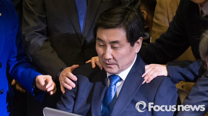 (서울=포커스뉴스) 테러방지법 직권상정에 반발해 야당이 세계 최장 기록의 필리버스터(무제한 토론)를 이어가고 있는 2일 오후 서울 여의도 국회 본회의장에서 토론에 참여한 이종걸 더불어민주당 원내대표가 12시간 31분 발언을 끝으로 단상을 내려와 동료의원들의 격려를 받고 있다.