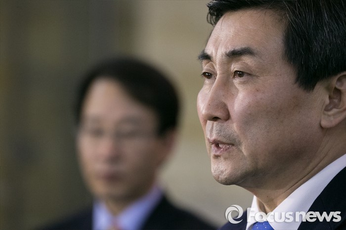 (서울=포커스뉴스) 테러방지법 직권상정에 반발해 야당이 세계 최장 기록의 필리버스터(무제한 토론)를 진행한 2일 오후 서울 여의도 국회에서 마지막 주자로 나섰던 이종걸 더불어민주당 원내대표가 취재진 질문에 답하고 있다. 마지막 주자로 나선 이 원내대표는 이날 정청래 의원의 기록인 11시간 40분을 경신한 12시간 31분을 기록하며 토론을 마쳤으며, 야당의 필리버스터는 약 193시간만에 종료됐다.