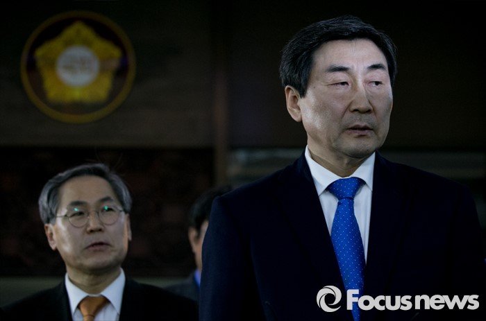 (서울=포커스뉴스) 테러방지법 직권상정에 반발해 야당이 세계 최장 기록의 필리버스터(무제한 토론)를 진행한 2일 오후 서울 여의도 국회에서 마지막 주자로 나섰던 이종걸(오른쪽) 더불어민주당 원내대표가 취재진 질문에 답하고 있다. 마지막 주자로 나선 이 원내대표는 이날 정청래 의원의 기록인 11시간 40분을 경신한 12시간 31분을 기록하며 토론을 마쳤으며, 야당의 필리버스터는 약 193시간만에 종료됐다.