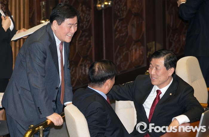 (서울=포커스뉴스) 2일 오후 서울 여의도 국회에서 열린 340회 국회(임시회) 7차 본회의에 참석한 황진하(오른쪽부터) 새누리당 사무총장, 강창희, 최경환 의원이 대화하고 있다.