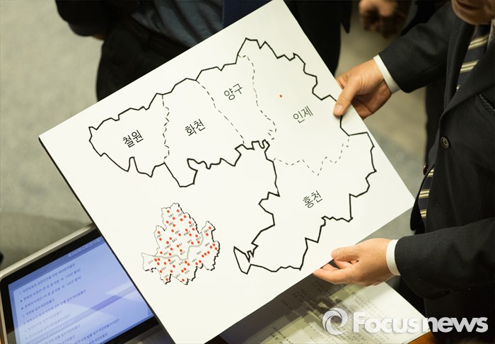 | △ 강원지역 선거구 보여주는 황영철 의원 |