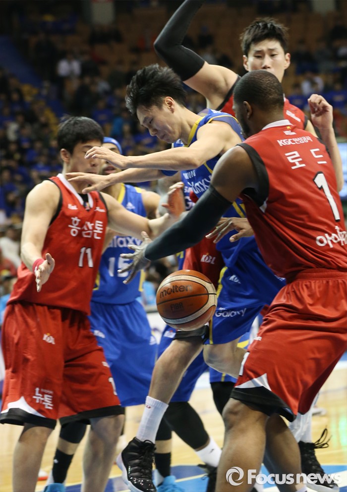 (서울=포커스뉴스) 2일 서울 잠실실내체육관에서 열린 2015-2016 프로농구 삼성-KGC 6강플레이오프 4차전에서 삼성 이시준이 레이업슛을 시도하다 KGC 찰스 로드의 수비에 걸려 볼을 놓치고 있다.