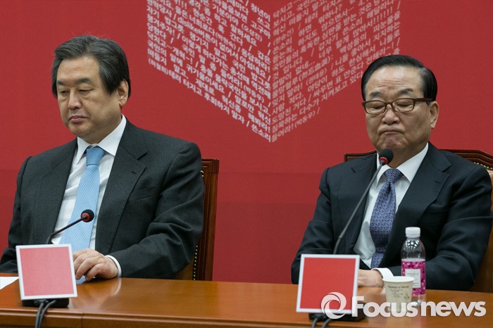 (서울=포커스뉴스) 김무성(왼쪽) 새누리당 대표와 서청원 최고위원이 3일 오전 서울 여의도 국회에서 열린 최고위원회의에 참석해 생각에 잠겨 있다.