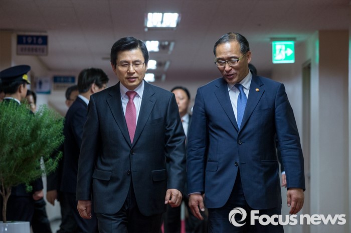 (서울=포커스뉴스) 황교안 국무총리와 홍윤식 행정자치부 장관이 3일 오전 서울 종로구 정부서울청사에서 열린 '국무회의'에 자리하기 위해 회의실로 들어서고 있다.
