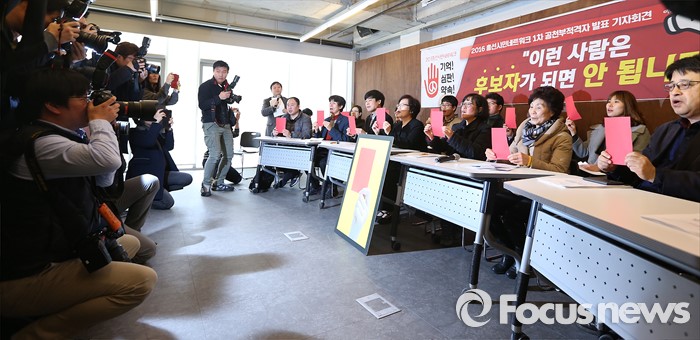 이날 총선시민네트워크측은 황우여, 최경환, 김진태, 박기준, 이노근, 김석기, 한상률, 김용판(새누리당)과 김현종(더불어민주당) 9명의 예비후보자를 공천부적격자로 선정해 발표했다.