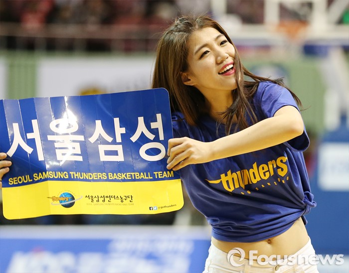 (서울=포커스뉴스) 2일 서울 잠실실내체육관에서 열린 2015-2016 프로농구 삼성-KGC 6강플레이오프 4차전에서 삼성 치어리더가 흥겨운 응원전을 펼치고 있다.