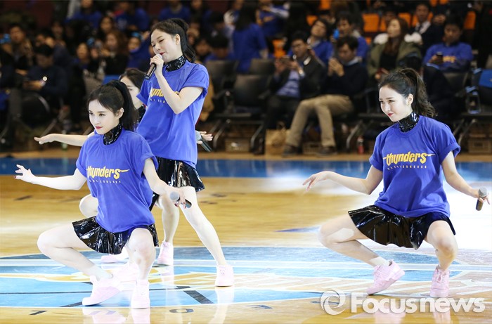 (서울=포커스뉴스) 2일 서울 잠실실내체육관에서 열린 2015-2016 프로농구 삼성-KGC 6강플레이오프 4차전 하프타임매 인기 걸그룹 식스밤이 흥겨운 춤과 노래를 관중에게 선사하고 있다.